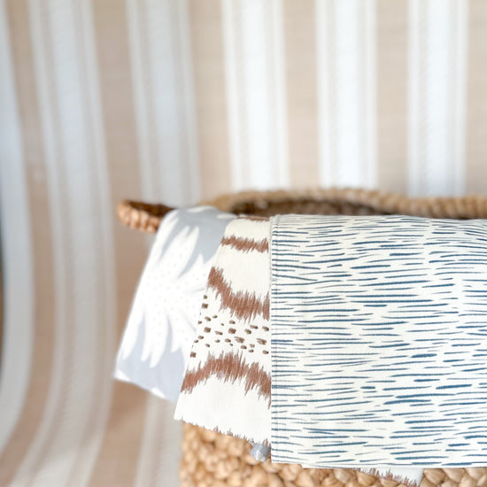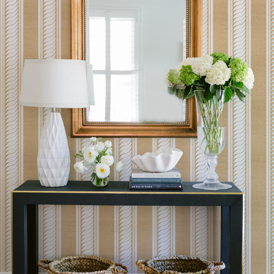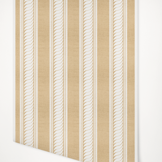 A textured raffia wallpaper featuring our best selling hand-drawn Maison stripe design. Each roll is crafted to order, highlighting the organic weave and artisanal character of the paper.